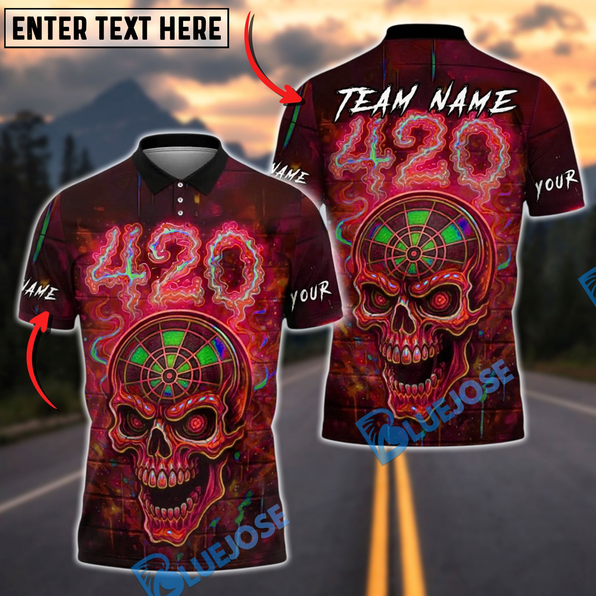 BlueJose Darts Skull 420 Neon Dartboard Glow Personalized Name, Team Name Unisex Shirt (4 Colors)