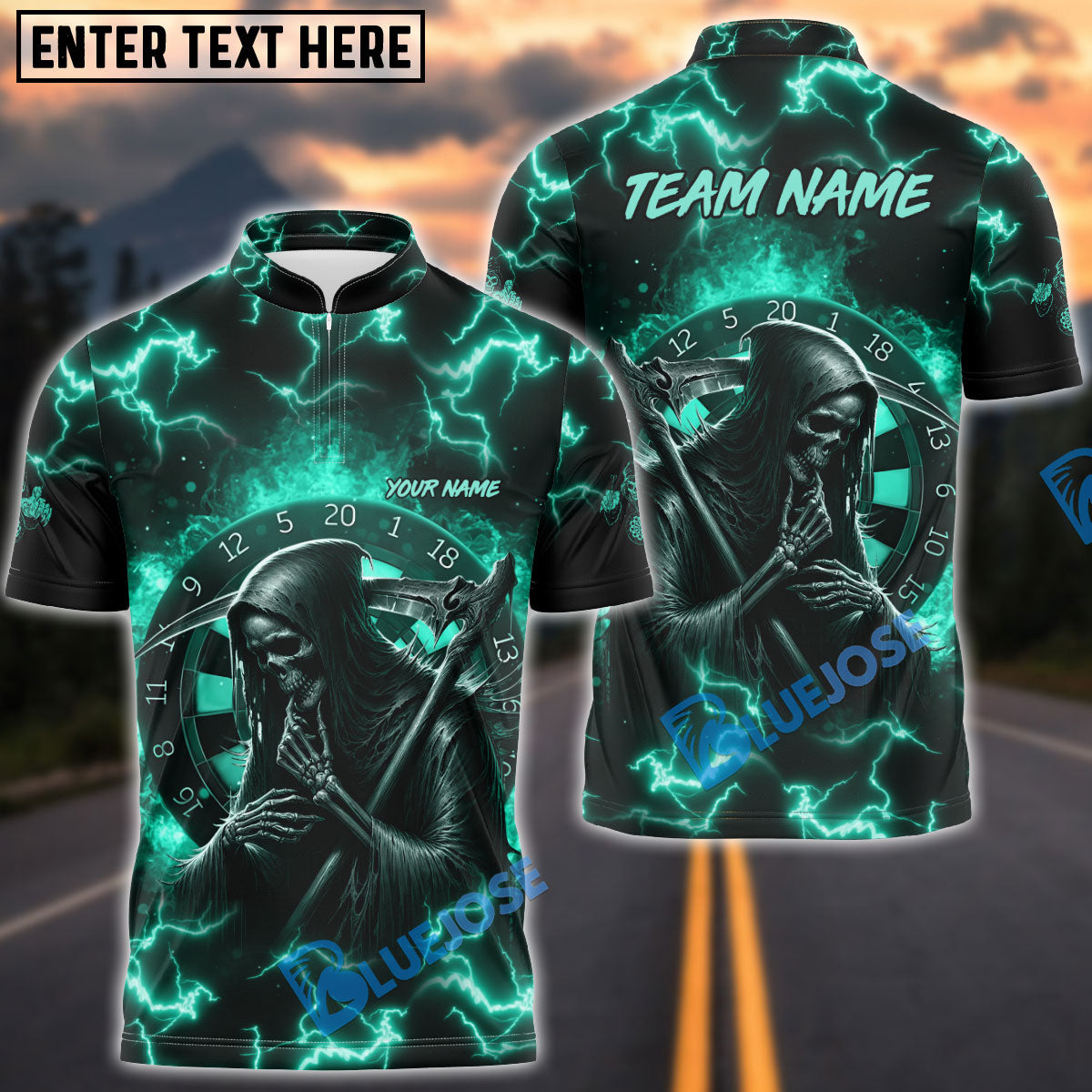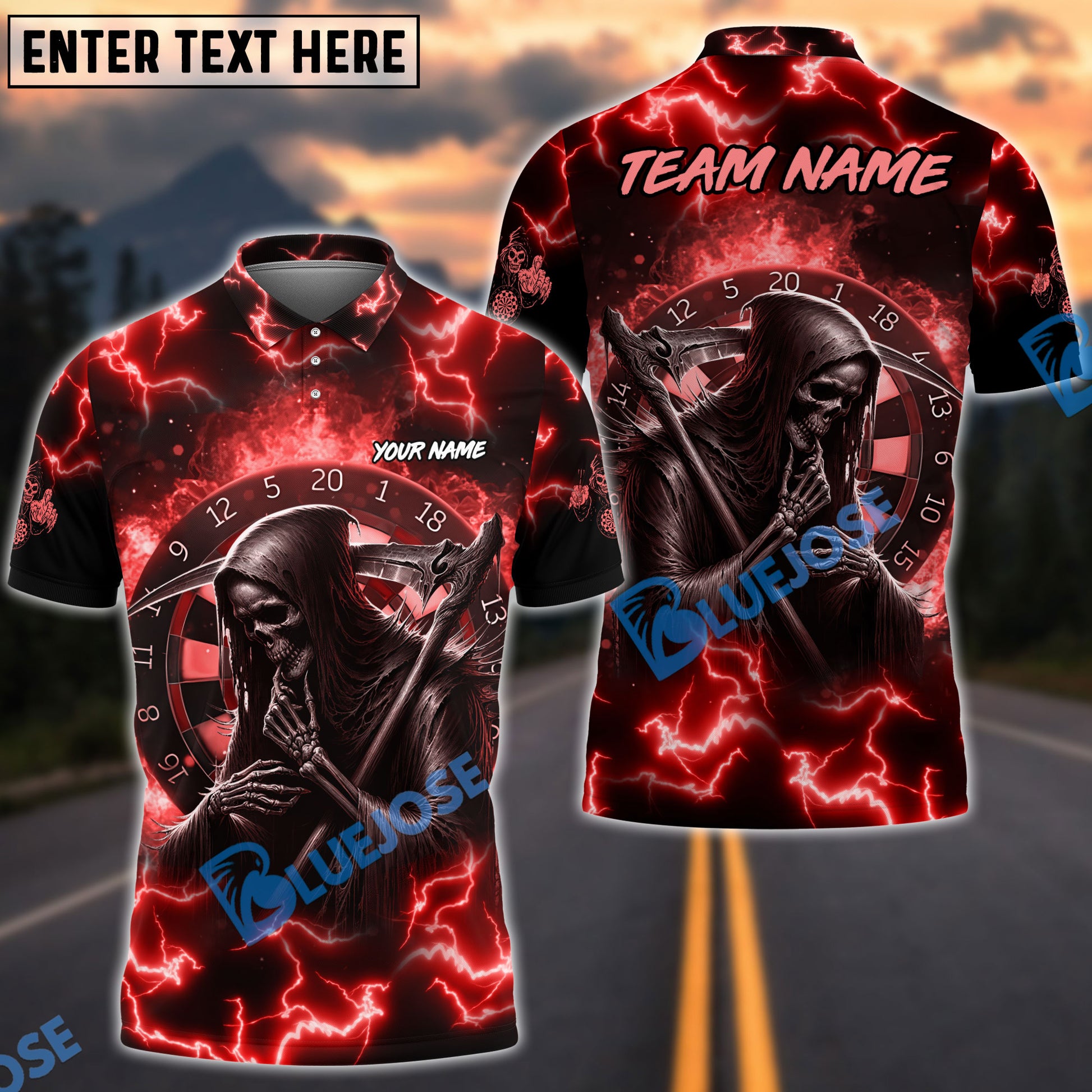 BlueJose Darts Skull Fire Personalized Name, Team Name Shirt (5 Colors)