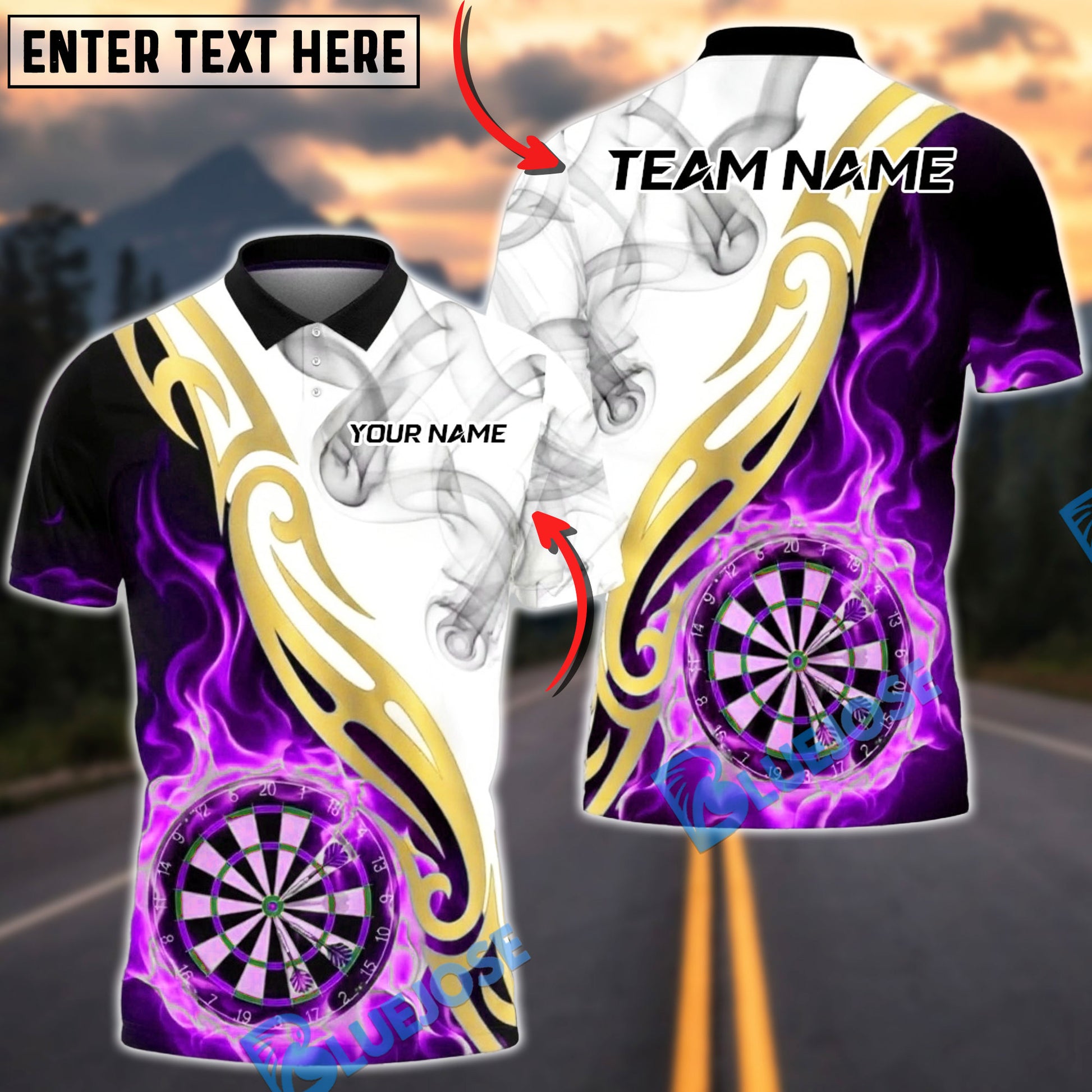 BlueJose Darts White Fire Smoke Golden Dartboard Multicolor Options Personalized Name Shirt (4 Colors)