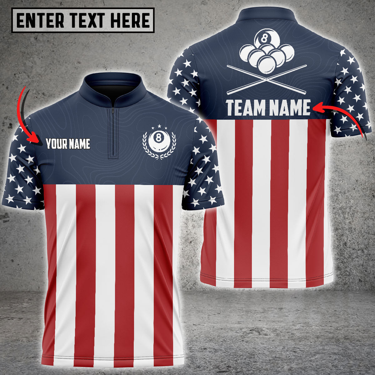 BlueJose 8 Ball Patriotic Flag Navy Billiard Custom Name 3D Shirt